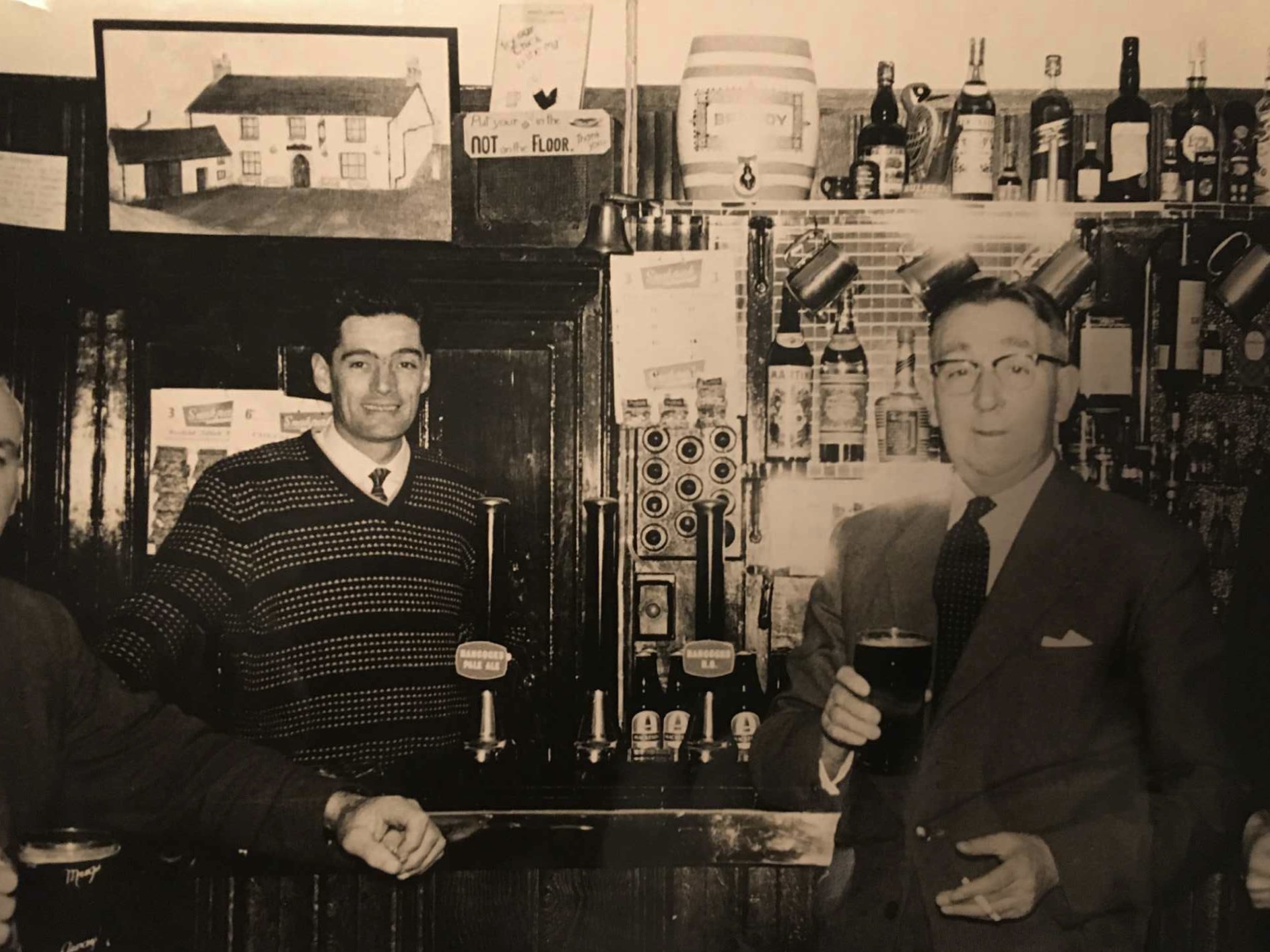 This sign sits above the Bar fireplace, featuring two Hancock’s “drinking men” on either side. R Styles refers to Robert/Bob styles, who was landlord in the early 60s before passing the pub to his daughter and son-in-law in 1962.